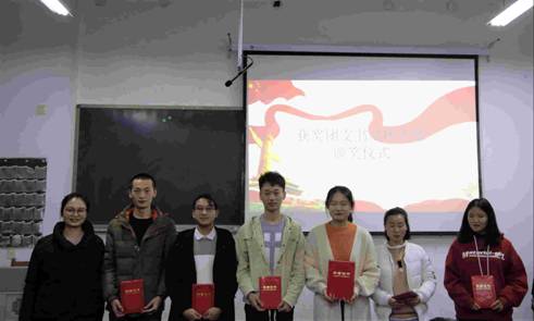 赵昊老师为获奖团支书颁奖并合影留念
